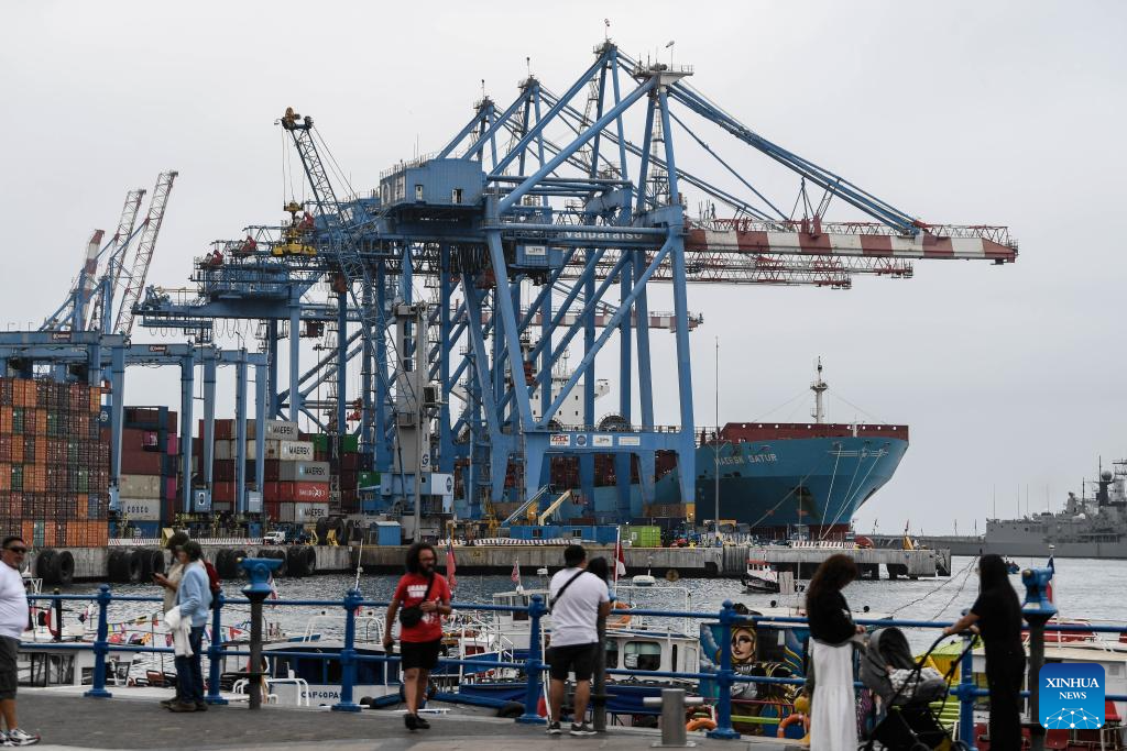 Imagen del 4 de febrero de 2025 de un buque cargado con contenedores en el Puerto de Valparaíso, en la ciudad de Valparaíso, Chile. La exportación de cerezas chilenas a China durante esta temporada impulsó las ventas al extranjero de los productores de frutas del país austral, destacó el miércoles la Subsecretaría de Relaciones Económicas Internacionales de Chile. (Xinhua/Jorge Villegas)