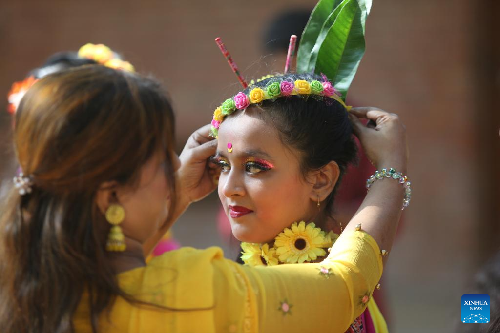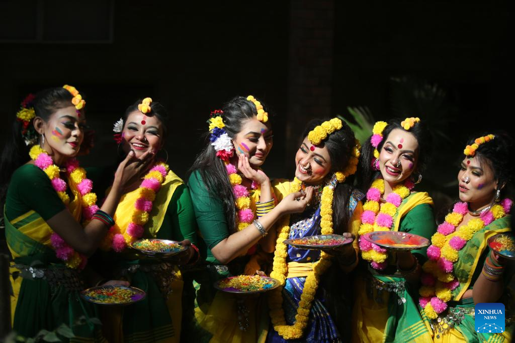 DHAKA, 15 febrero, 2025 (Xinhua) -- Imagen del 14 de febrero de 2025 de mujeres asistiendo a la celebración del Pohela Falgun, en Dhaka, Bangladesh. Los bangladesíes celebraron el viernes el Pohela Falgun, que anuncia la llegada de la primavera. (Xinhua/Habibur Rahman)