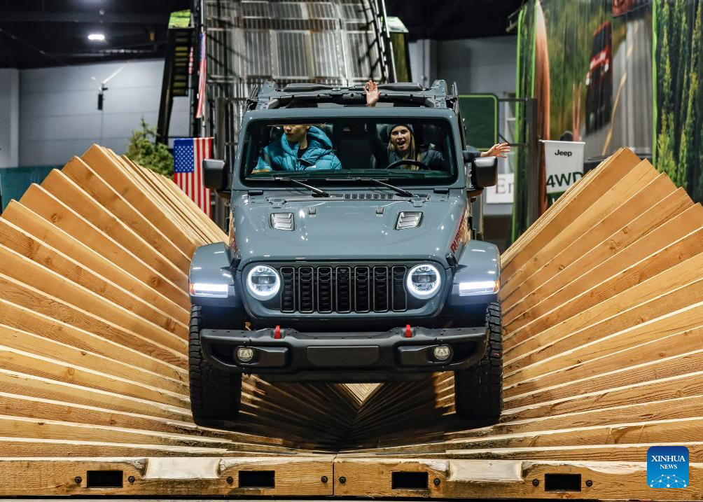 CHICAGO, 15 febrero, 2025 (Xinhua) -- Imagen del 14 de febrero de 2025 de personas probando un Jeep Gladiator 2025 en la pista de pruebas del Camp Jeep en el Salón del Automóvil de Chicago 2025 en el McCormick Place, en Chicago, Estados Unidos. El salón del automóvil se realiza del 8 al 17 de febrero. (Xinhua/Joel Lerner)