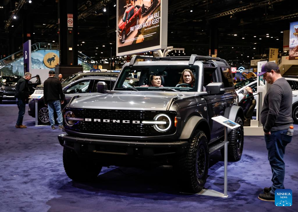 CHICAGO, 15 febrero, 2025 (Xinhua) -- Imagen del 14 de febrero de 2025 de personas conociendo sobre los Ford Broncos 2025 en el Salón del Automóvil de Chicago 2025 en el McCormick Place, en Chicago, Estados Unidos. El salón del automóvil se realiza del 8 al 17 de febrero. (Xinhua/Joel Lerner)