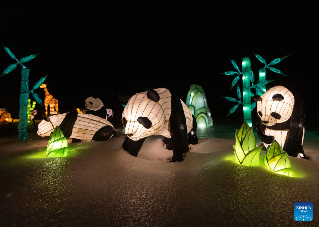 NIAGARA-ON-THE-LAKE, 15 febrero, 2025 (Xinhua) -- Imagen del 14 de febrero de 2025 de instalaciones luminosas con forma de panda vistas durante un espectáculo internacional de luces titulado "Noches Brillantes", en Niagara-on-the-Lake, en Ontario, Canadá. El espectáculo de luces al aire libre se lleva a cabo aquí del 6 de diciembre de 2024 al 1 de marzo de 2025. (Xinhua/Zou Zheng)