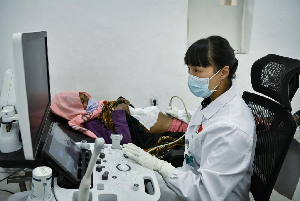 ADIS ABEBA, 17 febrero, 2025 (Xinhua) -- Imagen del 14 febrero de 2025 de la doctora china, Li Juan, miembro del 25 equipo médico chino enviado a Etiopía, realizando una ecografía a un paciente en el Hospital General Tirunesh de Beijing, en Adis Abeba, Etiopía. El 25 equipo médico chino enviado a Etiopía llegó al país en mayo de 2024 y ha estado prestando servicios médicos a pacientes locales y formando a médicos locales. También se construyó el Hospital General de Beijing Tirunesh como parte de los esfuerzos de asistencia de larga data del Gobierno chino. (Xinhua/Han Xu)