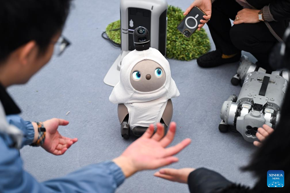 SHANGHAI, 21 febrero, 2025 (Xinhua) -- Personas interactúan con un robot de compañía en la Conferencia Mundial de Desarrolladores 2025 llevada a cabo en Shanghai, en el este de China, el 21 de febrero de 2025. La Conferencia Mundial de Desarrolladores 2025, que tendrá lugar del 21 al 23 de febrero en Shanghai, se centra en tecnologías de vanguardia, incluidos modelos de gran tamaño, potencia informática y plataformas de software. (Xinhua/Chen Haoming)