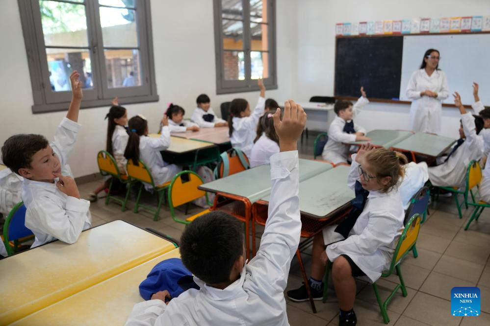 MONTEVIDEO, 5 marzo, 2025 (Xinhua) -- Niños participan en una clase durante el primer día de clases en la Escuela de Tiempo Completo "República del Perú", en Montevideo, capital de Uruguay, el 5 de marzo de 2025. (Xinhua/Nicolás Celaya)