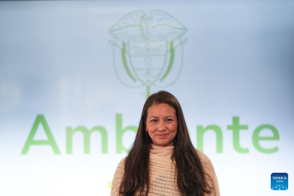 La ministra de Ambiente y Desarrollo Sostenible de Colombia, Lena Estrada Añokazi, habla durante una conferencia de prensa en la sede del Ministerio de Ambiente y Desarrollo Sostenible, en Bogotá, capital de Colombia, el 10 de marzo de 2025. (Xinhua/Andrés Moreno)