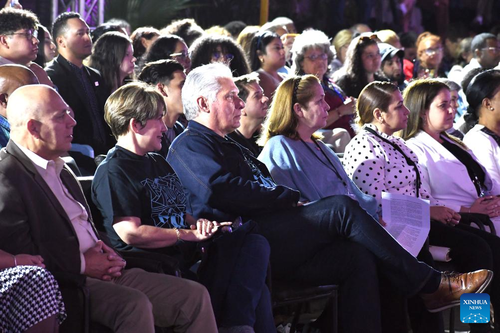 Imagen del 19 de marzo de 2025 de personas observando una presentación de una agrupación en la gala de clausura del IV Coloquio Internacional Patria en la Plaza Ignacio Agramonte de la Universidad de La Habana, en La Habana, capital de Cuba. La búsqueda de una coordinación global para desarrollar estrategias contra hegemónicas marcó el cierre del IV Coloquio Internacional Patria, al que asistió el presidente cubano Miguel Díaz-Canel, junto a unos 400 expertos en comunicación política, de medio centenar de países. (Xinhua/Joaquín Hernández)