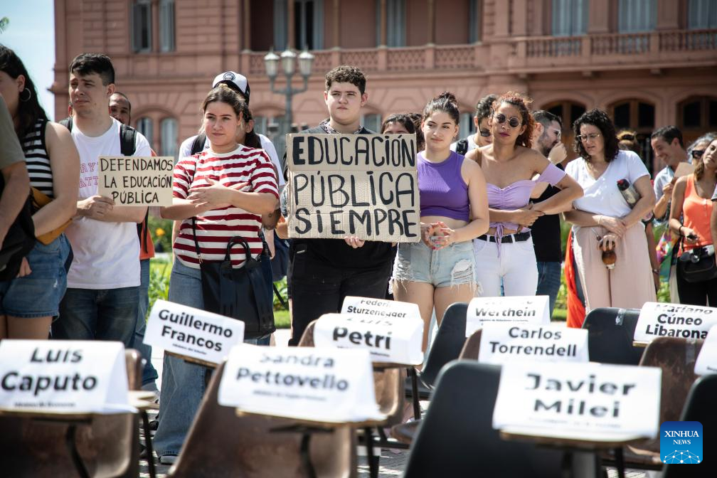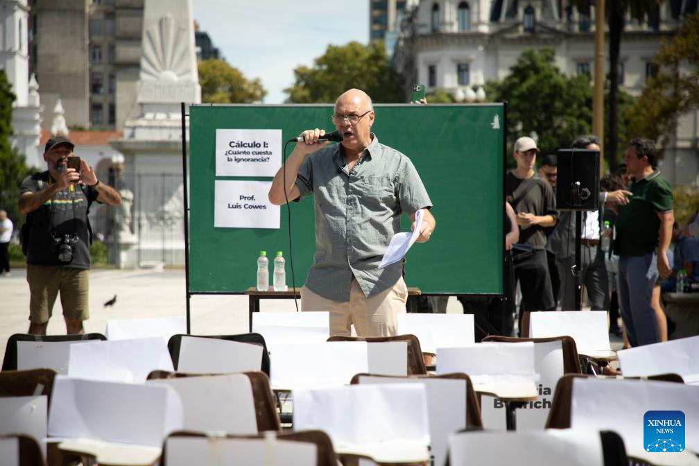 BUENOS AIRES, 21 mar (Xinhua) -- Profesores y académicos de la Universidad de Buenos Aires (UBA) dictaron hoy viernes clases magistrales frente a la Casa de Gobierno, en el centro de la ciudad de Buenos Aires (capital federal), para denunciar la situación de emergencia que atraviesa la educación pública en el país sudamericano producto de la falta de financiamiento y los bajos salarios del personal docente y no docente.