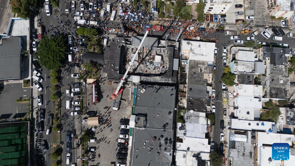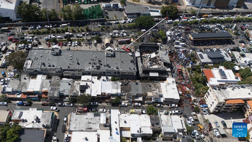 Vista aérea tomada con un dron del 8 de abril de 2025 del lugar donde se desplomó el techo de una discoteca, en Santo Domingo, República Dominicana. Al menos 44 personas murieron el martes tras desplomarse el techo de la discoteca "Jet Set" en la ciudad de Santo Domingo, capital de República Dominicana, confirmaron las autoridades locales. (Xinhua/Str)