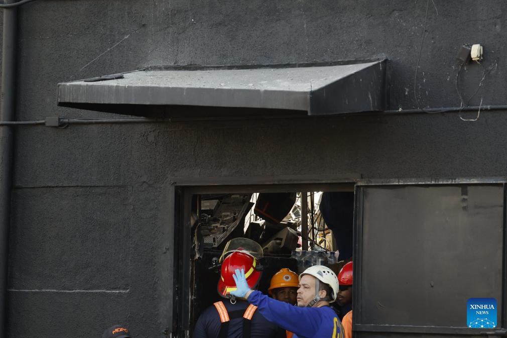 Trabajadores de emergencias laboran en el lugar donde se desplomó el techo de una discoteca, en Santo Domingo, República Dominicana, el 8 de abril de 2025. Al menos 44 personas murieron el martes tras desplomarse el techo de la discoteca "Jet Set" en la ciudad de Santo Domingo, capital de República Dominicana, confirmaron las autoridades locales. (Xinhua/Str)