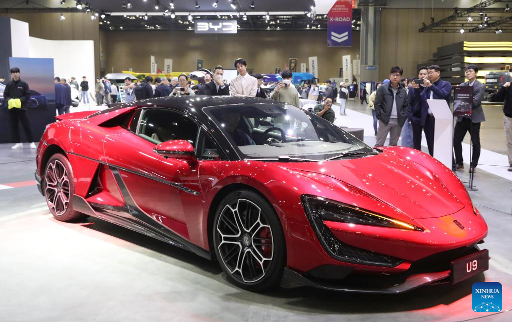 GOYANG, 8 abril, 2025 (Xinhua) -- Visitantes observan un automóvil deportivo en el estand del fabricante chino de vehículos eléctricos BYD durante el Salón de la Movilidad de Seúl 2025, en la ciudad de Goyang, en la provincia de Gyeonggi, República de Corea, el 8 de abril de 2025. El Salón de la Movilidad de Seúl 2025 se lleva a cabo aquí del 4 al 13 de abril. (Xinhua/Yao Qilin)