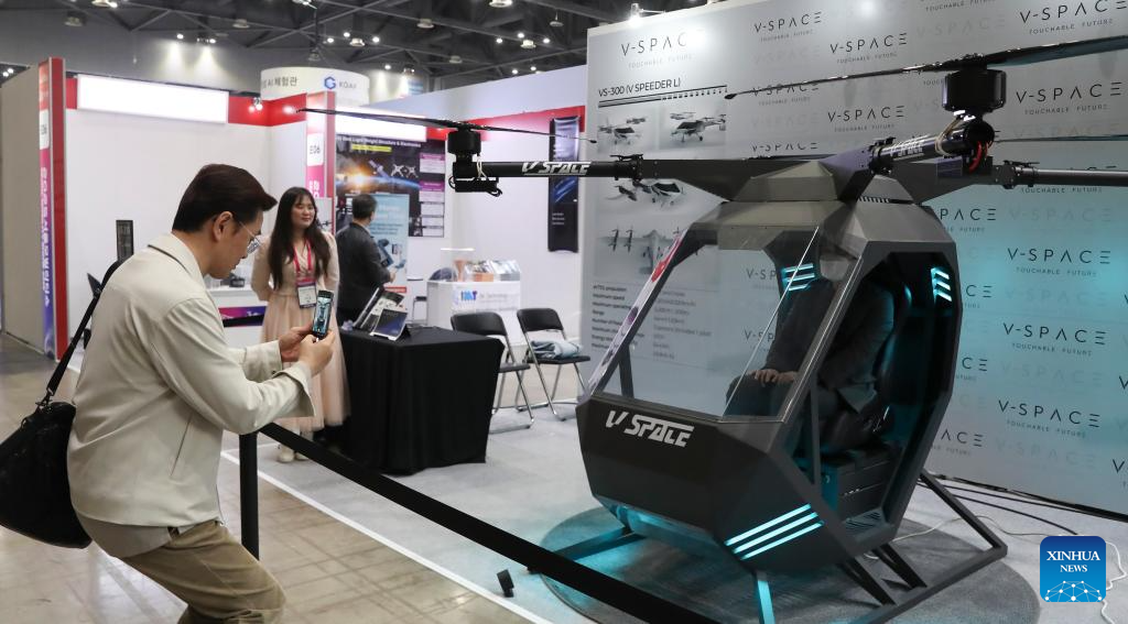 GOYANG, 8 abril, 2025 (Xinhua) -- Un visitante toma fotografías de una aeronave inteligente durante el Salón de la Movilidad de Seúl 2025, en la ciudad de Goyang, en la provincia de Gyeonggi, República de Corea, el 8 de abril de 2025. El Salón de la Movilidad de Seúl 2025 se lleva a cabo aquí del 4 al 13 de abril. (Xinhua/Yao Qilin)