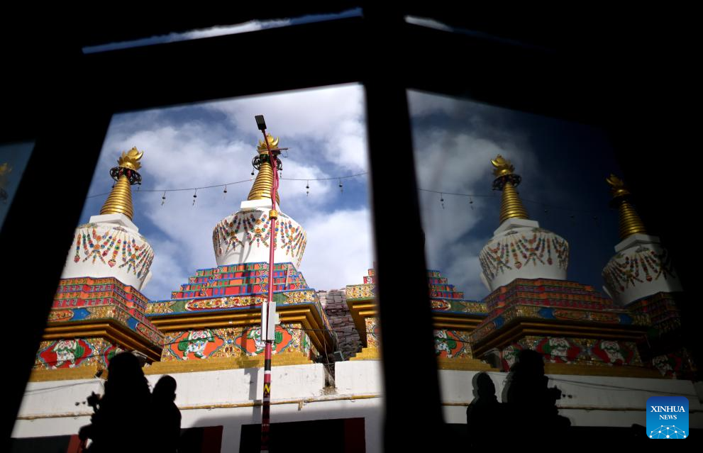 YUSHU, 8 abril, 2025 (Xinhua) -- Imagen del 6 de abril de 2025 de personas orando mientras rodean el montículo de piedras mani de Jiana, en la ciudad de Yushu, en la prefectura autónoma tibetana de Yushu, en la provincia de Qinghai, en el noroeste de China. El montículo de piedras mani de Jiana es una reliquia cultural bajo protección nacional. Está compuesto por miles de millones de piedras mani y es utilizado por los habitantes cuando sostienen ruedas de oración y murmuran la oración de seis sílabas para cumplir su ritual diario. (Xinhua/Qi Zhiyue)