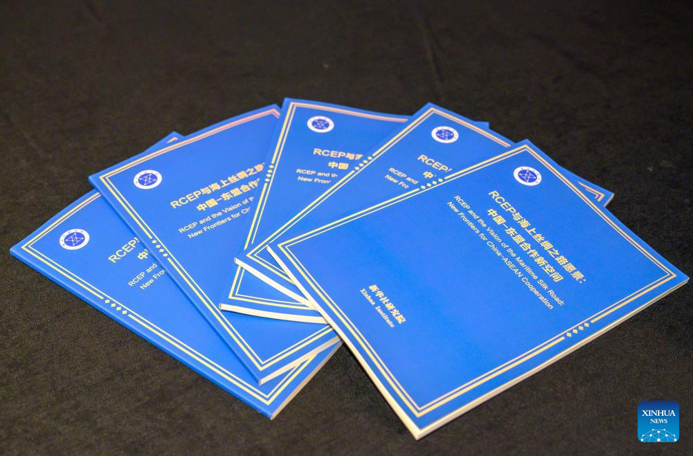 Imagen del 8 de abril de 2025 de un informe titulado "RCEP y la visión de la Ruta Marítima de la Seda: Nuevas Fronteras para la Cooperación China-ASEAN". El informe fue publicado el viernes por el Instituto Xinhua, un grupo de expertos afiliado a la Agencia de Noticias Xinhua, en el Foro de Medios de Comunicación y Grupos de Expertos China-ASEAN en Kuala Lumpur. (Xinhua/Yin Gang)