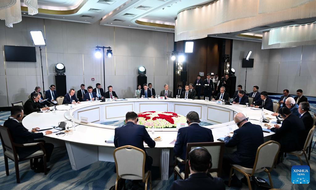 ALMATY, 26 abril, 2025 (Xinhua) -- La VI Reunión de Ministros de Relaciones Exteriores China-Asia Central se lleva a cabo en Almaty, Kazajistán, el 26 de abril de 2025. (Xinhua/Li Renzi)