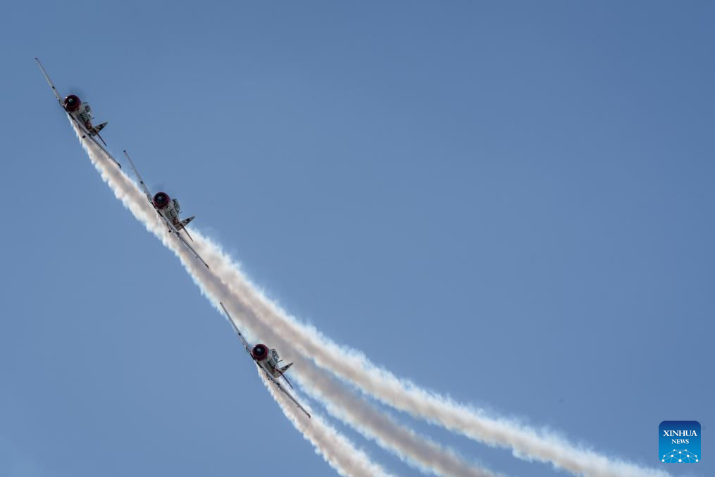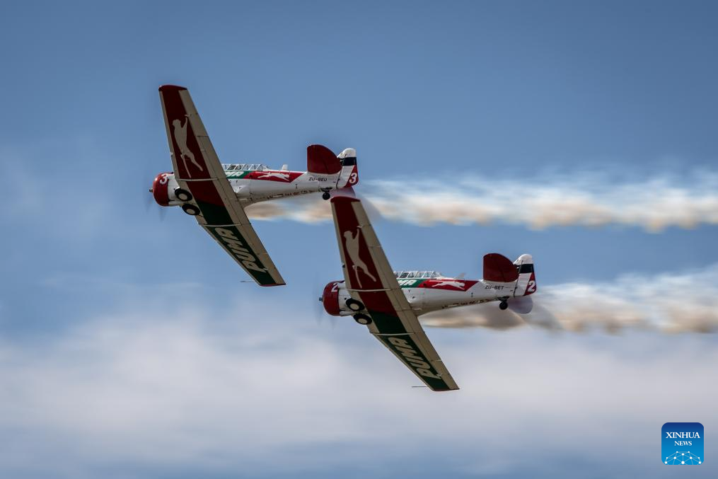 PRETORIA, 3 mayo, 2025 (Xinhua) -- Aeronaves realizan una presentación durante la Exhibición Aérea del Museo de la Fuerza Aérea Sudafricana (SAAF, por sus siglas en inglés), en Pretoria, Sudáfrica, el 3 de mayo de 2025. La anual Exhibición Aérea del Museo de la SAAF se realizó aquí el sábado. (Xinhua/Shiraaz Mohamed)