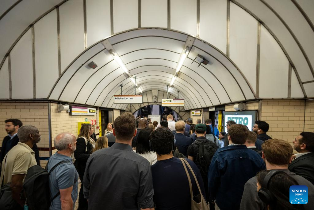 Imagen del 12 de mayo de 2025 de viajeros vistos en la estación de Baker Street, en Londres, Reino Unido. Un apagón afectó al metro de Londres, causando interrupciones generalizadas en los viajes por la capital el lunes por la tarde, confirmó Transport for London. (Xinhua/Stephen Chung)