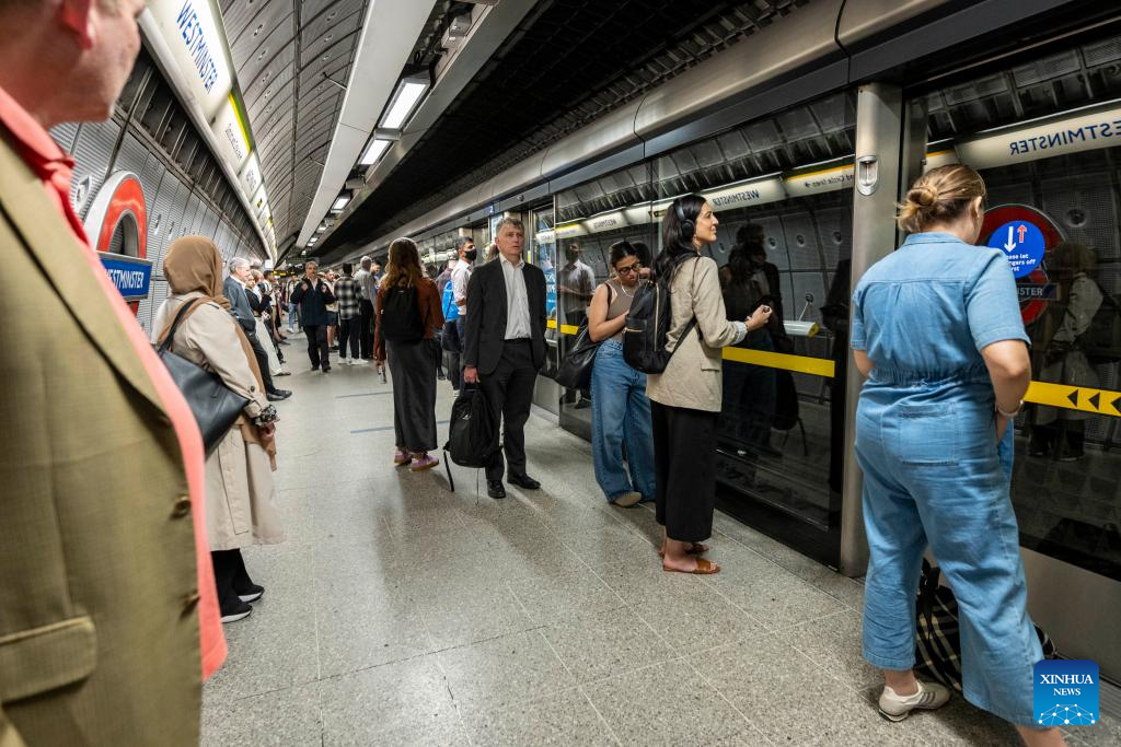 Imagen del 12 de mayo de 2025 de viajeros esperando un tren retrasado de la línea Jubilee en la estación de Westminster, en Londres, Reino Unido. Un apagón afectó al metro de Londres, causando interrupciones generalizadas en los viajes por la capital el lunes por la tarde, confirmó Transport for London. (Xinhua/Stephen Chung)