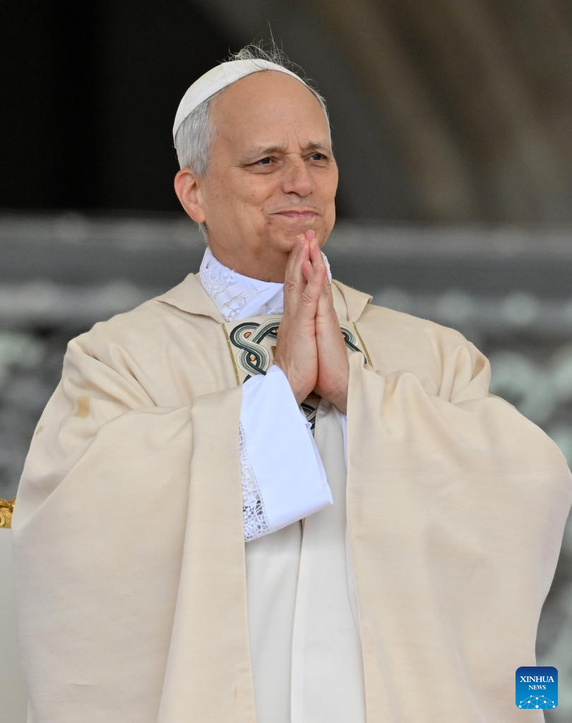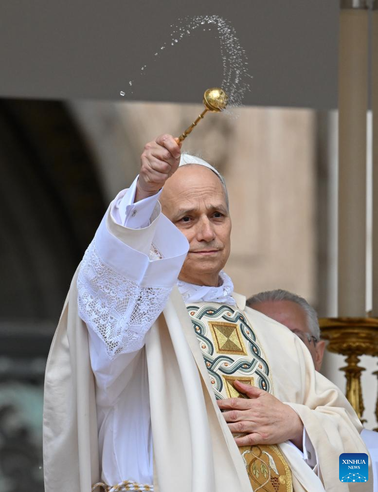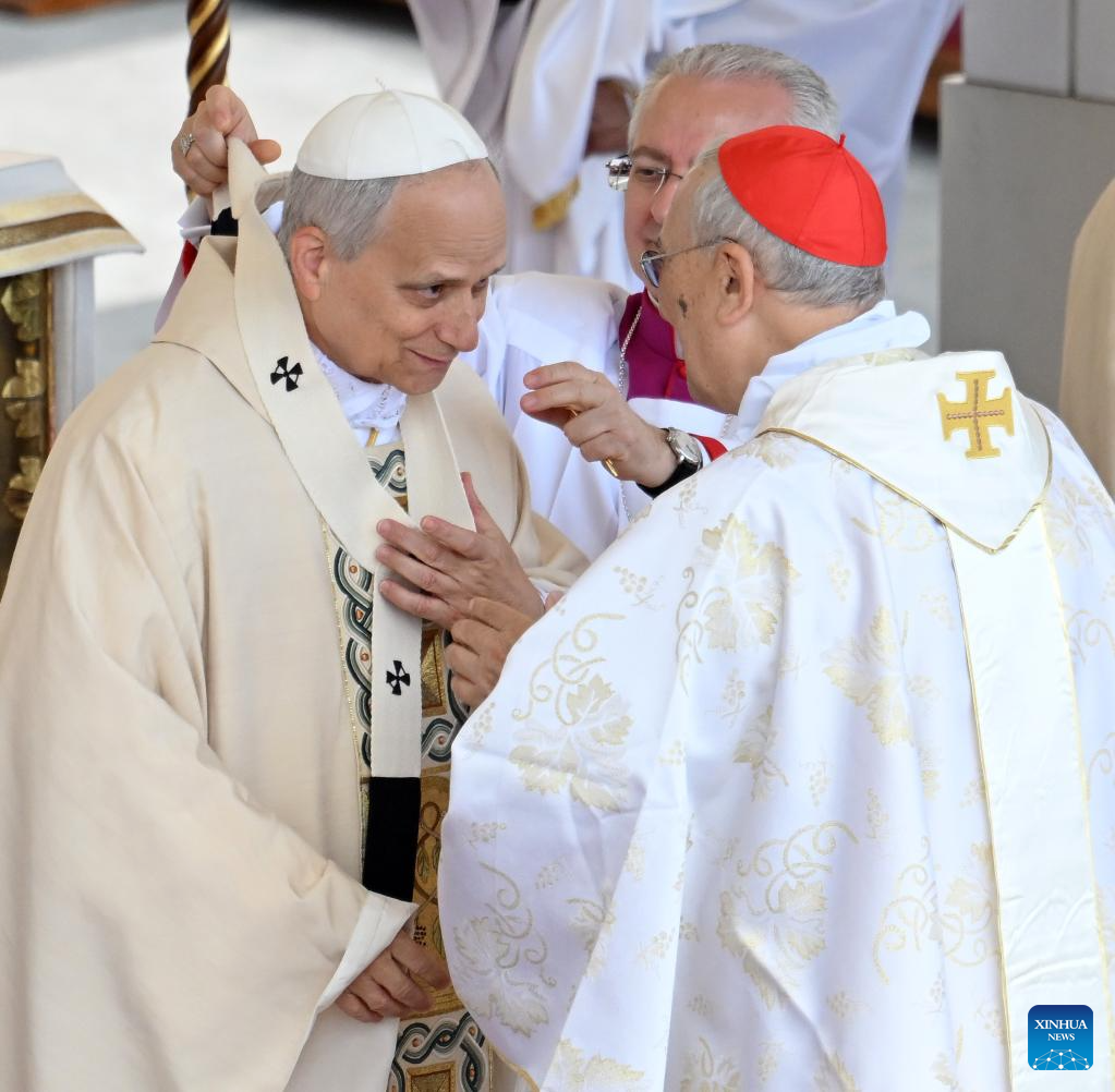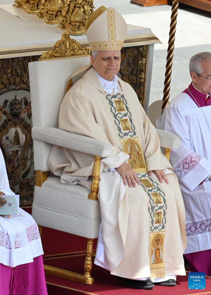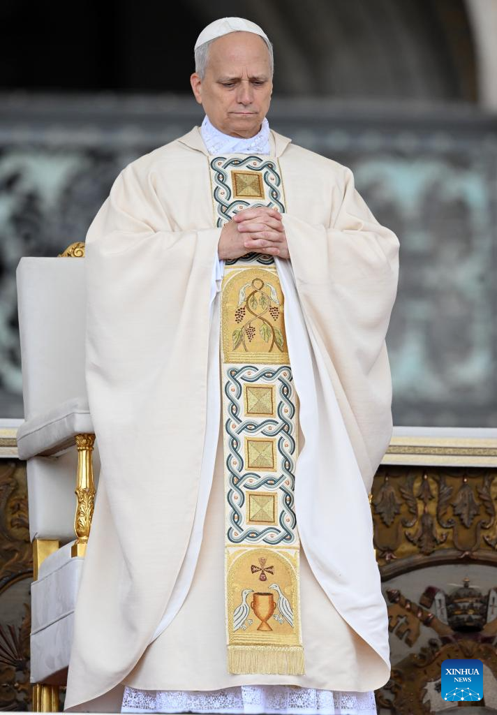 CIUDAD DEL VATICANO, 19 mayo, 2025 (Xinhua) -- Imagen del 18 de mayo de 2025 del papa León XIV asistiendo a la misa de investidura, en la Plaza de San Pedro, en la Ciudad del Vaticano. León XIV fue investido oficialmente como pontífice de la Iglesia Católica Romana el domingo. (Xinhua/Alberto Lingria)