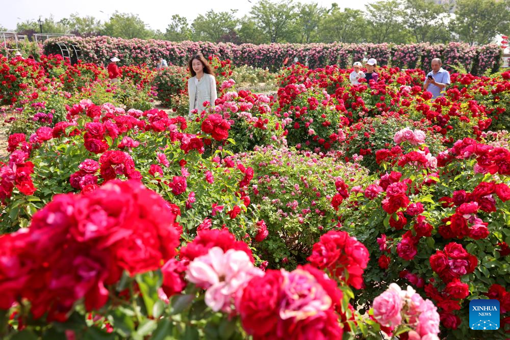 BEIJING, 19 mayo, 2025 (Xinhua) -- Turistas disfrutan de las flores en un parque, en Zaozhuang, en la provincia de Shandong, en el este de China, el 19 de mayo de 2025. El 19 de mayo de este año se celebra el 15° Día del Turismo de China. (Xinhua/Sun Zhongzhe)