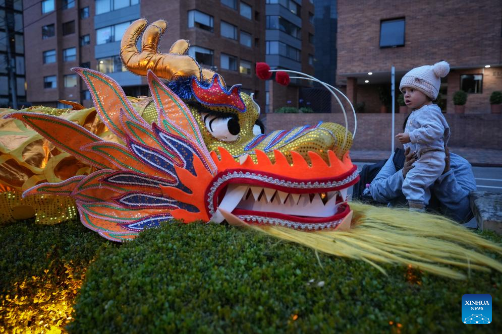 Imagen del 22 de mayo de 2025 de una niña observando una figura de dragón durante la exposición "El tiempo de los caballos y los carruajes, transportes e intercambios por la Ruta de la Seda" en la Biblioteca Museo Casa Lleras, en la ciudad de Bogotá, capital de Colombia. La Biblioteca Museo Casa Lleras de Bogotá abrió sus puertas la noche del jueves a la exposición "El tiempo de los caballos y los carruajes, transportes e intercambios por la Ruta de la Seda", una exhibición de fotografías, esculturas y objetos referentes a la red de rutas comerciales establecida por China en el siglo I a.C. y que conectó al país asiático con los principales mercados de ese continente y de Europa. (Xinhua/Andrés Moreno)
