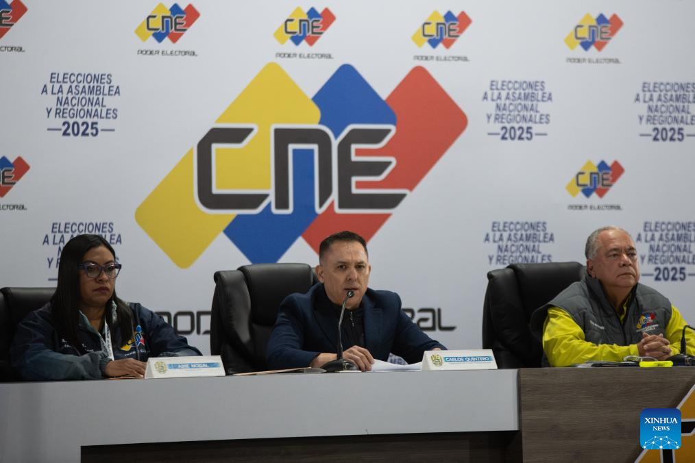 CARACAS, 25 may (Xinhua) -- El vicepresidente del Consejo Nacional Electoral (CNE) de Venezuela, Carlos Quintero, informó esta noche que la coalición gobernante encabezada por el Partido Socialista Unido de Venezuela (PSUV), triunfó de manera contundente en las elecciones parlamentarias y regionales que se desarrollaron hoy domingo.