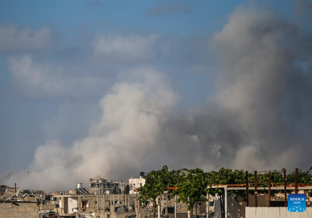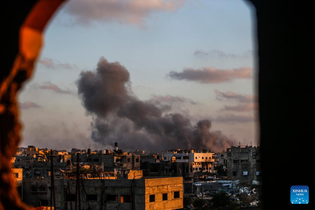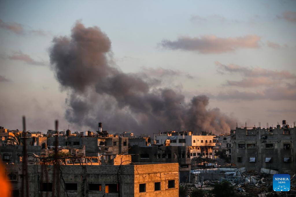 Humo se eleva después de un ataque aéreo israelí, en el campamento de refugiados de Jabalia, en el norte de la Franja de Gaza, el 27 de mayo de 2025. La cifra de palestinos muertos en Gaza supera los 54.000 desde que inició el conflicto entre Hamas e Israel el 7 de octubre de 2023, dieron a conocer el martes las autoridades de salud de Gaza. (Xinhua/Mahmoud Zaki)