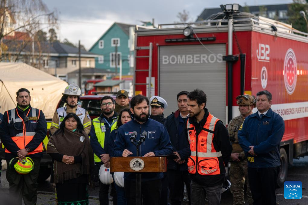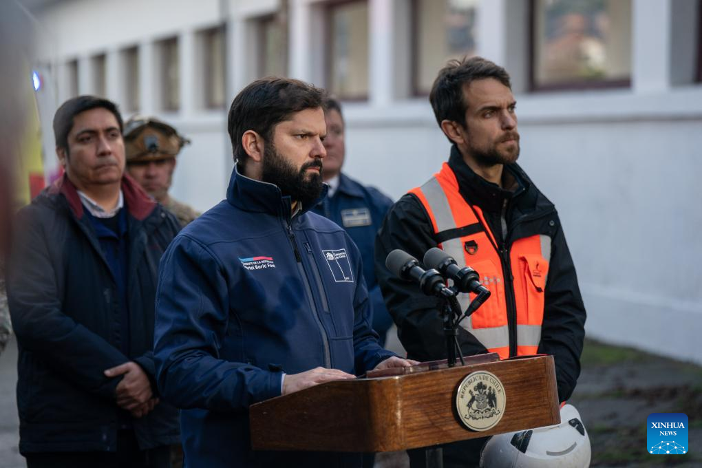 SANTIAGO, 26 may (Xinhua) -- El presidente de Chile, Gabriel Boric, viajará hoy lunes al municipio sureño de Puerto Varas, donde un inédito tornado dejó el domingo al menos 19 personas heridas y más de 250 viviendas con daños, además de postes eléctricos y árboles caídos.