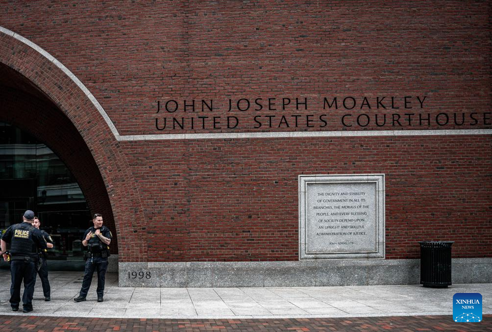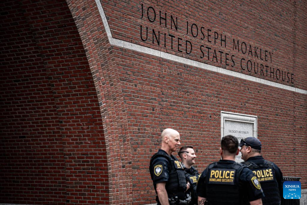 Imagen del 29 de mayo de 2025 de oficiales de policía frente al Tribunal de Distrito de Estados Unidos para el Distrito de Massachusetts, en Boston, Massachusetts, Estados Unidos. Una jueza federal de Estados Unidos extendió el jueves una Orden de Restricción Temporal sobre la política de la administración Trump que pretende impedir que la Universidad de Harvard matricule a estudiantes internacionales. (Xinhua/Ziyu Julian Zhu)