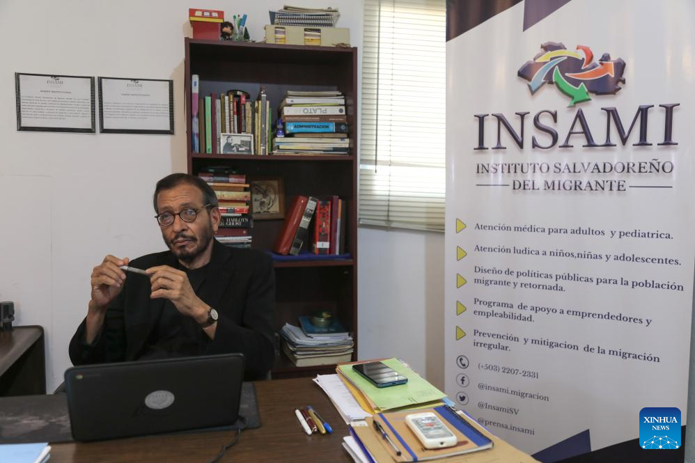Imagen del 26 de mayo de 2025 de Salvador Amilcar Carrillo, psicólogo del Instituto Salvadoreño del Migrante, en su oficina, en el departamento de San Salvador, capital de El Salvador. Informes recientes de organizaciones de la sociedad civil dedicadas a la defensa de los derechos de los migrantes revelan cientos de denuncias sobre el trato cruel y degradante que sufren niñas y niños migrantes detenidos por la Patrulla Fronteriza de Estados Unidos. (Xinhua/Alexander Peña)
