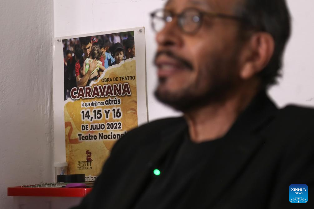 Imagen del 26 de mayo de 2025 de un cartel de una obra de teatro sobre el tema migrante colocado en la oficina de Salvador Amilcar Carrillo, psicólogo del Instituto Salvadoreño del Migrante, en el departamento de San Salvador, capital de El Salvador. Informes recientes de organizaciones de la sociedad civil dedicadas a la defensa de los derechos de los migrantes revelan cientos de denuncias sobre el trato cruel y degradante que sufren niñas y niños migrantes detenidos por la Patrulla Fronteriza de Estados Unidos. (Xinhua/Alexander Peña)