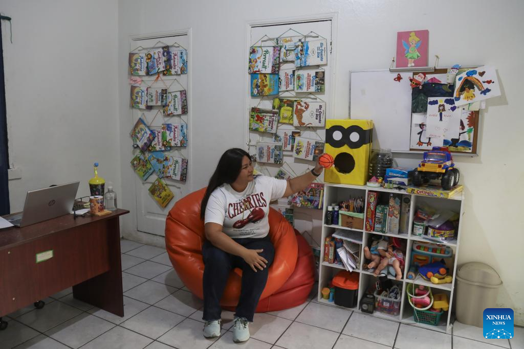 Imagen del 26 de mayo de 2025 de Magali Peña, psicóloga infantil del Instituto Salvadoreño del Migrante y responsable del Club de Niños y Niñas migrantes de El Salvador, sosteniendo un juguete en una oficina, en el departamento de San Salvador, capital de El Salvador. Informes recientes de organizaciones de la sociedad civil dedicadas a la defensa de los derechos de los migrantes revelan cientos de denuncias sobre el trato cruel y degradante que sufren niñas y niños migrantes detenidos por la Patrulla Fronteriza de Estados Unidos. (Xinhua/Alexander Peña)