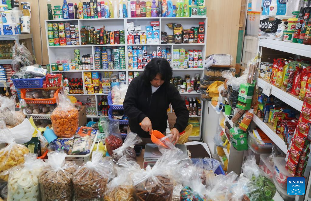Una vendedora de abarrotes atiende un puesto de un mercado, en el distrito de San Bartolo, en el sur de Lima, Perú, el 1 de junio de 2025. El Índice de Precios al Consumidor (IPC) a nivel nacional de Perú disminuyó 0,05 por ciento en mayo pasado, con lo cual el país acumuló una inflación de 1,05 por ciento en los primeros cinco meses, informó el domingo el Instituto Nacional de Estadística e Informática (INEI). (Xinhua/Mariana Bazo)