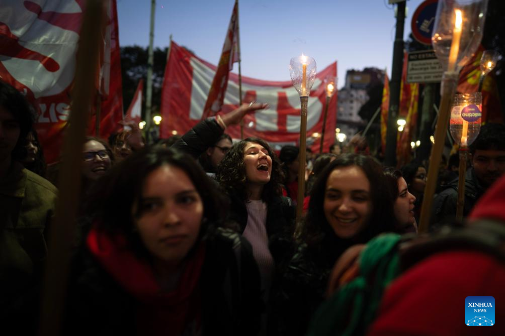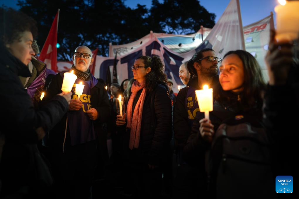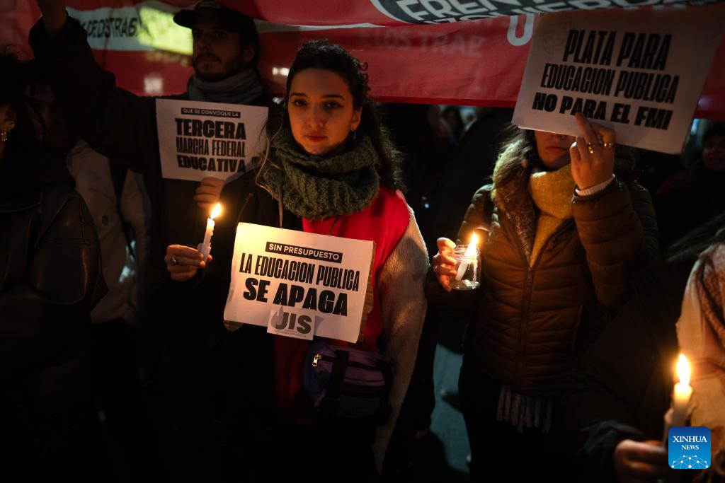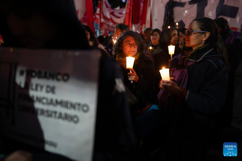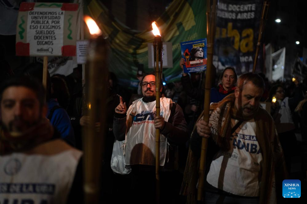 BUENOS AIRES, 26 jun (Xinhua) -- Gremios docentes y no docentes, junto con estudiantes universitarios y dirigentes políticos, realizaron hoy en distintas ciudades de Argentina marchas de antorchas para exigir la recomposición de los salarios del sector y la aprobación de una ley de financiamiento universitario, entre otras demandas.