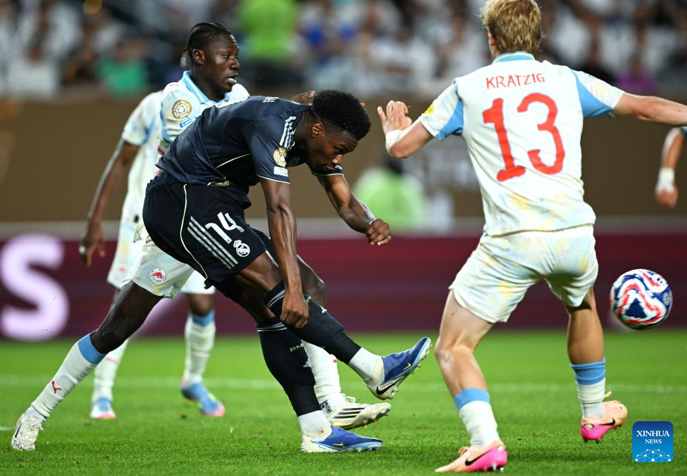 FILADELFIA, 27 junio, 2025 (Xinhua) -- Imagen del 26 de junio de 2025 de Aurelien Tchouameni (c), de Real Madrid, compitiendo durante el partido de fútbol del grupo H entre Real Madrid, de España, y Red Bull Salzburg, de Austria, en la Copa Mundial de Clubes de la FIFA 2025, en Filadelfia, Estados Unidos. (Xinhua/Wu Xiaoling)