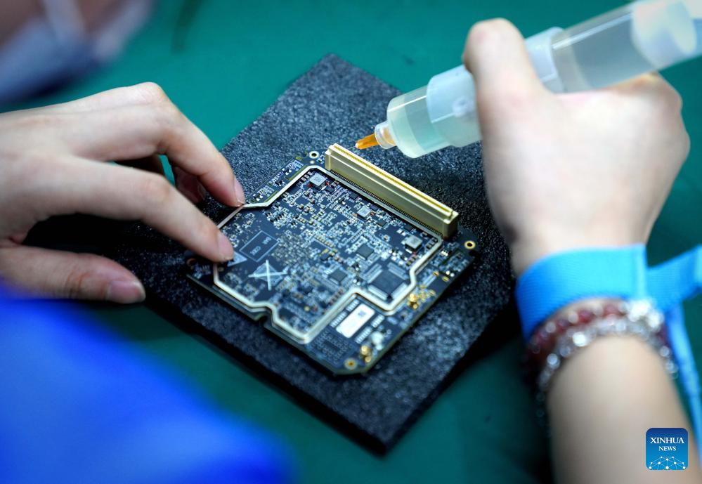 SHENZHEN, 27 junio, 2025 (Xinhua) -- Imagen del 26 de junio de 2025 de un trabajador laborando en un tablero de control de vuelo de un vehículo aéreo no tripulado en el taller del United Aircraft Group, en Shenzhen, en la provincia de Guangdong, en el sur de China. Guangdong ha posicionado su floreciente economía de baja altitud como un motor clave para desarrollar nuevas fuerzas productivas de calidad y cultivar nuevos puntos de crecimiento económico. Shenzhen destaca como la "Capital de los Drones" de China, con una concentración de más de 1.700 empresas relacionadas con los drones. (Xinhua/Li An)