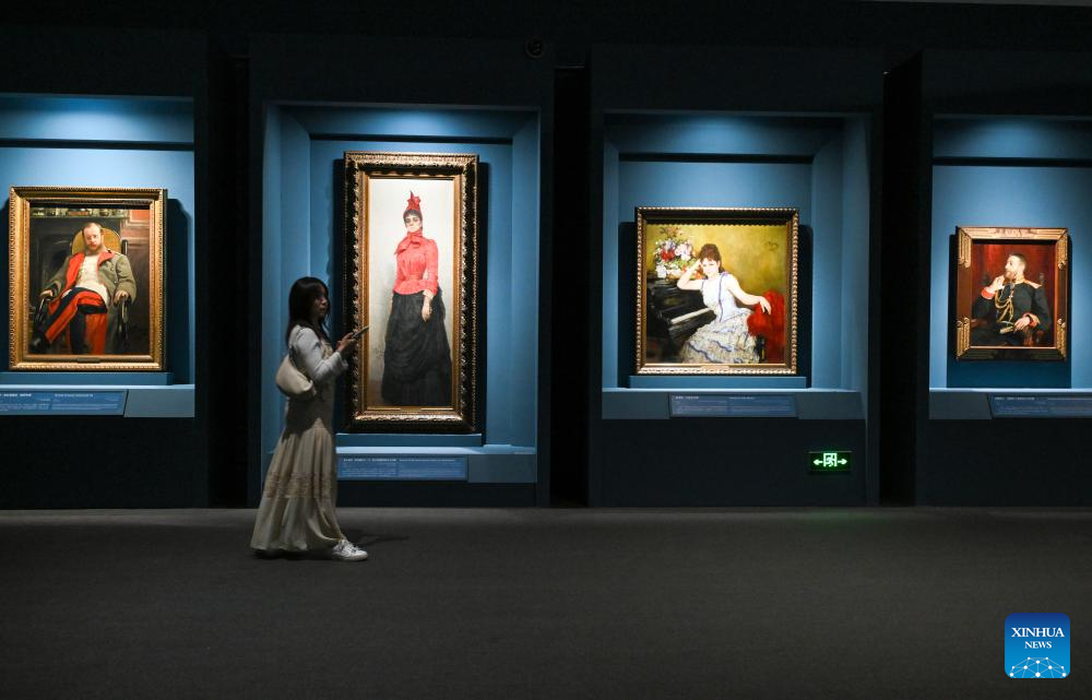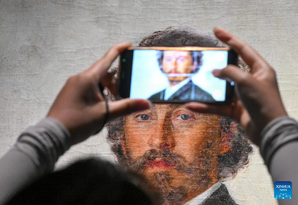 BEIJING, 23 julio, 2025 (Xinhua) -- Imagen del 22 de julio de 2025 de un visitante tomando una fotografía de un retrato de Ilya Repin en la exposición "Enciclopedia de la Vida Rusa de Ilya Repin" en el Museo Nacional de China, en Beijing, capital de China. La exposición se inauguró aquí el martes, presentando 92 piezas representativas del pintor realista ruso Ilya Repin. (Xinhua/Jin Liangkuai)