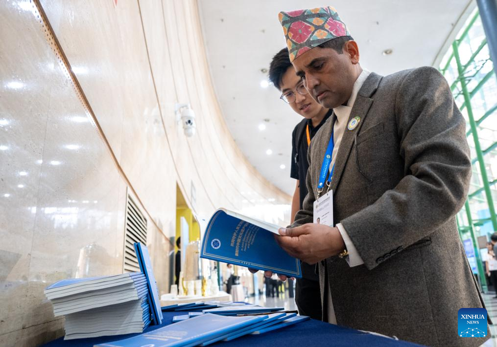 ZHENGZHOU, 25 julio, 2025 (Xinhua) -- Un delegado lee un informe del grupo de expertos titulado "En custodia conjunta de los tesoros de la civilización humana: La filosofía y la práctica de China para la protección del patrimonio cultural en la nueva era" durante la actual Cumbre de Medios de Comunicación y Think Tanks de la Organización de Cooperación de Shanghai (OCS), en Zhengzhou, en la provincia de Henan, en el centro de China, el 25 de julio de 2025. Un informe que resalta el enfoque innovador de China en la protección del patrimonio cultural fue publicado el viernes por el Instituto Xinhua, un grupo de expertos afiliado a la Agencia de Noticias Xinhua. (Xinhua/Hu Jingwen)
