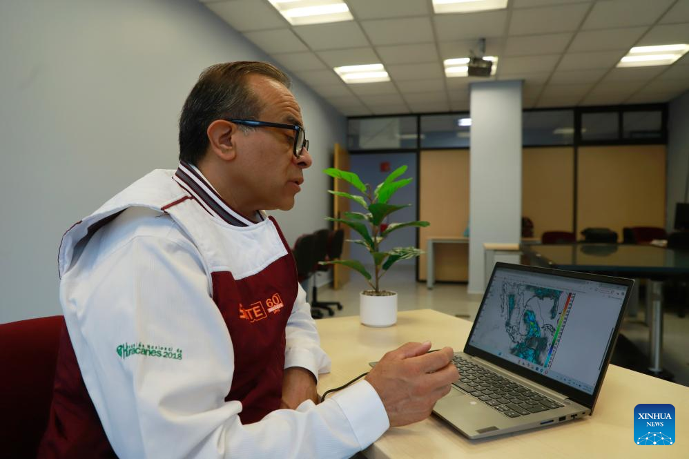 Imagen del 10 de julio de 2025 del coordinador del Programa de Ingeniería Meteorológica de la Escuela Superior de Ingeniería y Arquitectura, Unidad Ticomán del Instituto Politécnico Nacional, Leodegario Sansón Reyes, revisando sistemas meteorológicos mediante la implementación de la inteligencia artificial (IA) en los modelos de predicción, en la Ciudad de México, capital de México. México avanza en la modernización de sus sistemas meteorológicos mediante la implementación de la IA en los modelos de predicción, los cuales son capaces de prever hasta en menos de una hora fenómenos extremos como inundaciones súbitas, olas de calor y ciclones tropicales. (Xinhua/Pool Contreras)