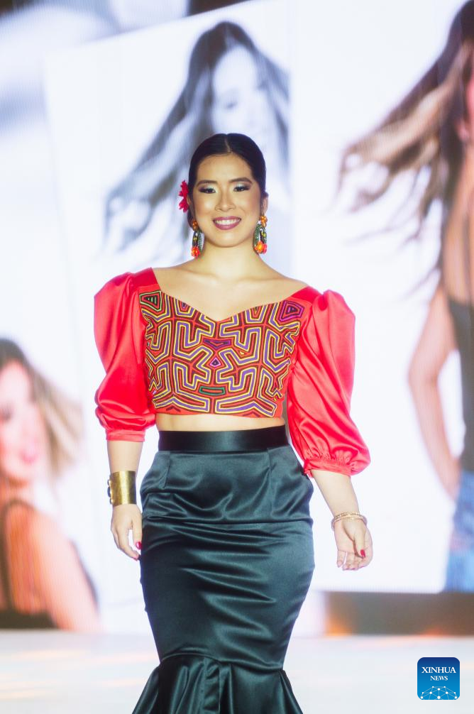 Imagen del 9 de agosto de 2025 de la candidata Mey Ling Ho Cruzado, participando en el certamen Reina China Panamá 2025, con el tema "Diversamente Culturales", en la Ciudad de Panamá, capital de Panamá. (Xinhua/Xu Yongzheng)