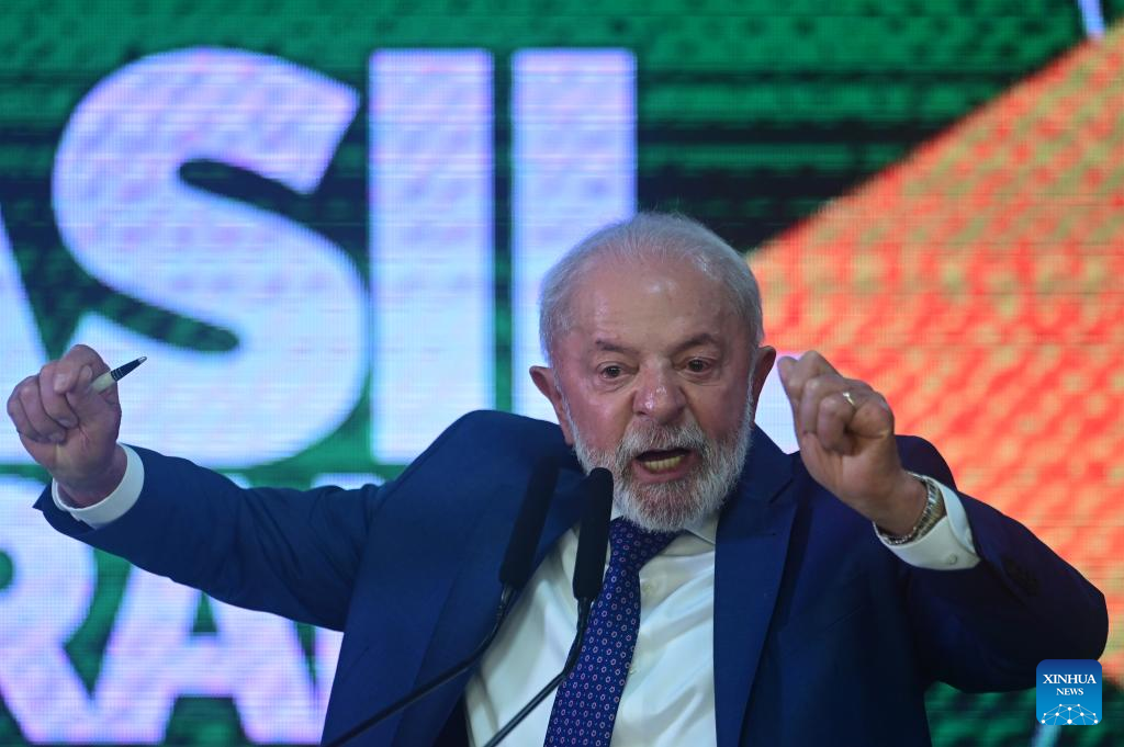 BRASILIA, 13 agosto, 2025 (Xinhua) -- El presidente brasileño, Luiz Inácio Lula da Silva, habla durante la ceremonia de lanzamiento del Plan Brasil Soberano, en el Palacio de Planalto, en Brasilia, Brasil, el 13 de agosto de 2025. El Gobierno federal lanzó el miércoles el Plan Brasil Soberano, un paquete de medidas para apoyar a los sectores productivos afectado por el arancel del 50 por ciento impuesto por el Gobierno de Estados Unidos. (Xinhua/Lucio Tavora)