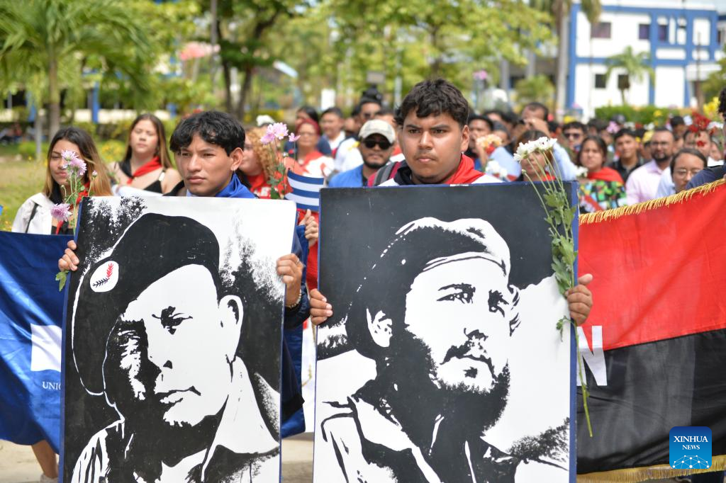 MANAGUA, 13 ago (Xinhua) -- Nicaragua conmemoró hoy miércoles el 99 aniversario del natalicio del expresidente cubano Fidel Castro y el 95 del comandante nicaragüense Tomás Borge, con una jornada nacional de actos político-culturales encabezados por jóvenes, estudiantes y trabajadores en todo el país.