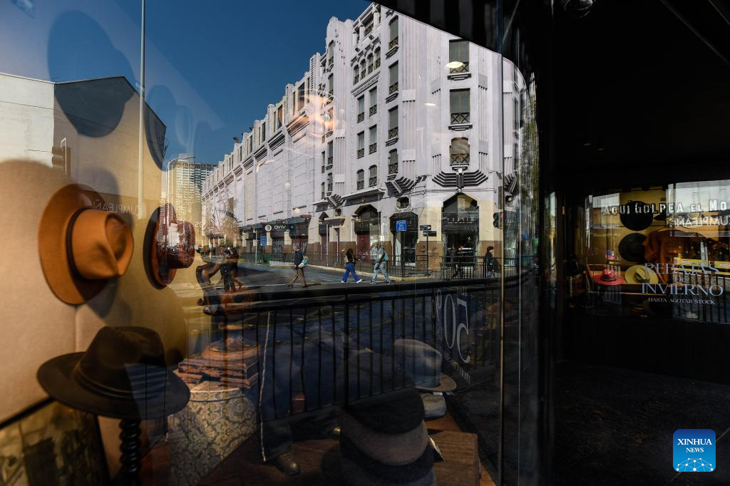 Personas caminan frente de una tienda de sombreros, en Santiago, capital de Chile, el 19 de agosto de 2025. Chile creció 3,1 por ciento en el segundo trimestre de 2025, impulsado por la demanda interna y la inversión, lo que demuestra la consolidación del ritmo del crecimiento superior a lo estimado, explicó el lunes el ministro de Hacienda, Mario Marcel. (Xinhua/Jorge Villegas)