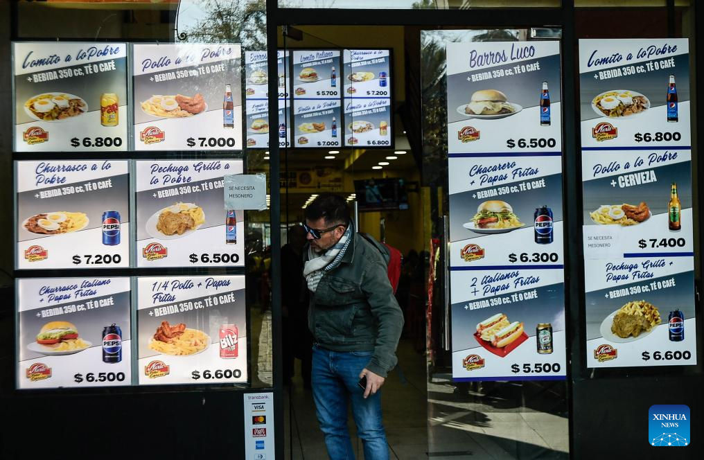 Un hombre sale de un restaurante de comida rápida, en Santiago, capital de Chile, el 19 de agosto de 2025. Chile creció 3,1 por ciento en el segundo trimestre de 2025, impulsado por la demanda interna y la inversión, lo que demuestra la consolidación del ritmo del crecimiento superior a lo estimado, explicó el lunes el ministro de Hacienda, Mario Marcel. (Xinhua/Jorge Villegas)