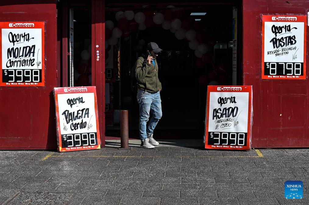 Un hombre observa precios en una carnicería, en Santiago, capital de Chile, el 19 de agosto de 2025. Chile creció 3,1 por ciento en el segundo trimestre de 2025, impulsado por la demanda interna y la inversión, lo que demuestra la consolidación del ritmo del crecimiento superior a lo estimado, explicó el lunes el ministro de Hacienda, Mario Marcel. (Xinhua/Jorge Villegas)