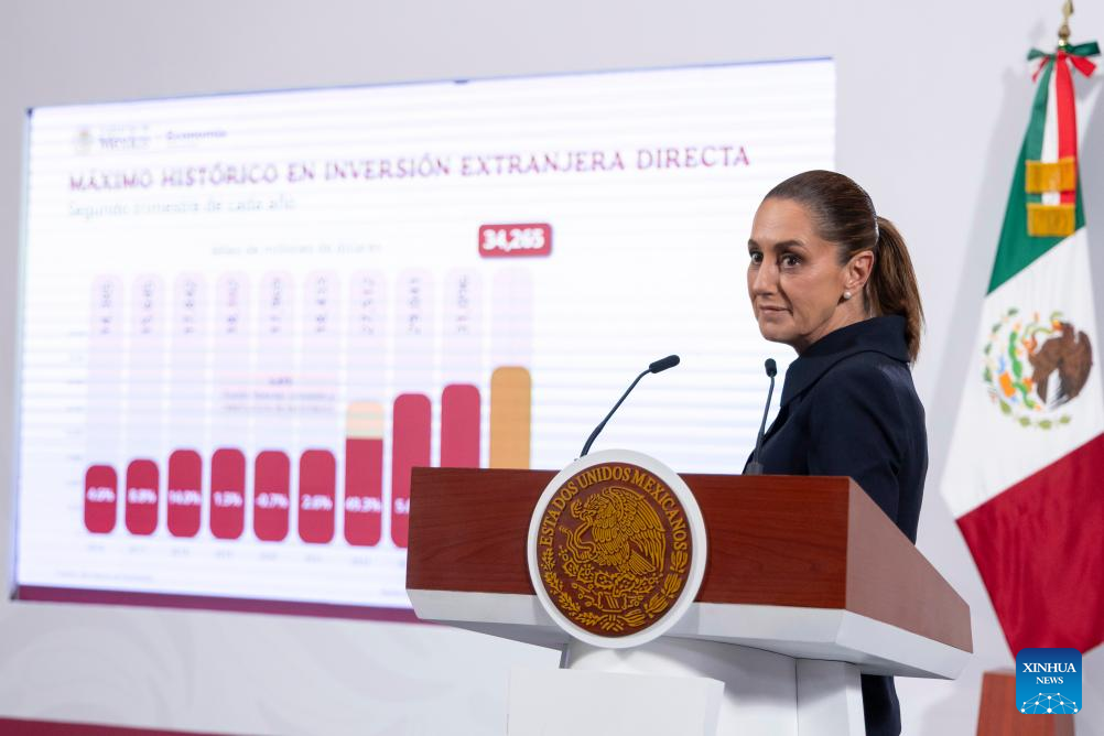 MÉXICO, 21 ago (Xinhua) -- La presidenta mexicana, Claudia Sheinbaum, afirmó hoy jueves que la Inversión Extranjera Directa (IED) en México alcanzó un nuevo máximo histórico en el segundo trimestre de 2025, al anotar 34.265 millones de dólares.