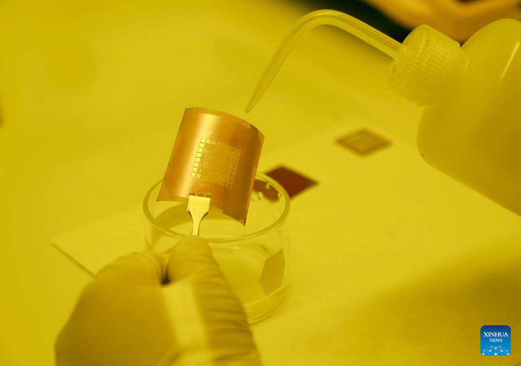 Imagen del 21 de agosto de 2025 del doctor en Ciencias y profesor en el Centro de Nanociencias y Micro y Nanotecnologías del Instituto Politécnico Nacional, Norberto Hernández, lavando un semiconductor de material flexible, en la Ciudad de México, capital de México. La producción de semiconductores se ha convertido en un factor estratégico para el crecimiento económico y la independencia tecnológica de los países, y México busca posicionarse en esta industria clave. (Xinhua/Pool Contreras)