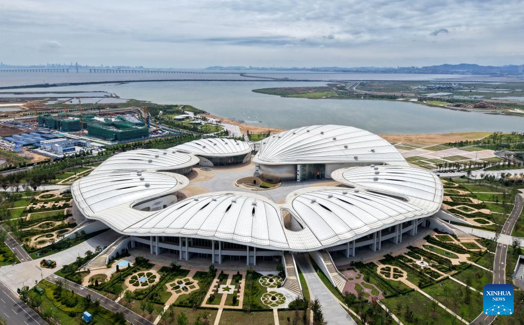 QINGDAO, 29 agosto, 2025 (Xinhua) -- Imagen tomada con un dron el 27 de agosto de 2025 del Centro Internacional de Exposiciones SCODA Pearl de Qingdao en la Zona de Demostración de Cooperación Económica y Comercial Local China-OCS (Organización de Cooperación de Shanghai) (SCODA), en Qingdao, en la provincia de Shandong, en el este de China. De acuerdo con las estadísticas de las aduanas, el valor comercial de la zona de demostración con otros países miembros de la OCS durante los primeros siete meses de este año alcanzó los 53,26 billones de yuanes (unos 7,47 billones de dólares estadounidenses), lo que supone un aumento interanual del 26,1 por ciento. (Xinhua/Li Ziheng)