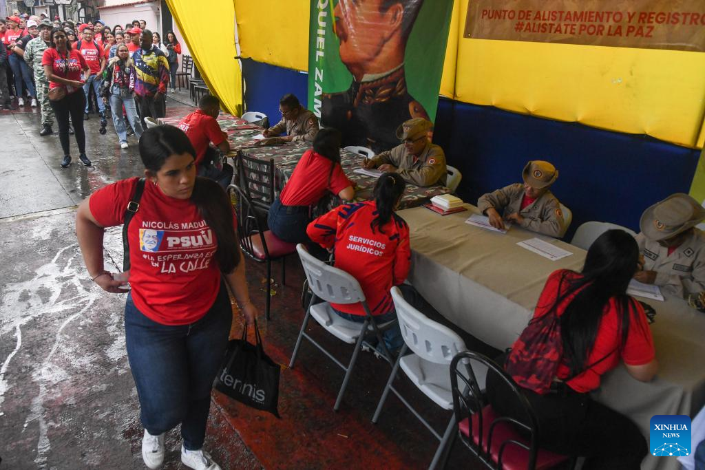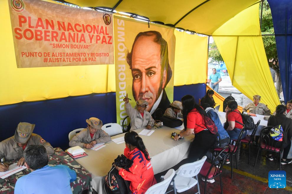 CARACAS, 29 agosto, 2025 (Xinhua) -- Personas se alistan en la Milicia Nacional Bolivariana durante la segunda jornada de alistamiento, en Caracas, Venezuela, el 29 de agosto de 2025. Es con la "unión nacional" que se podrá hacer frente a "la agresión militar" que plantea el imperialismo norteamericano sobre Venezuela, afirmó el viernes el ministro del Poder Popular para la Defensa venezolano, Vladimir Padrino López. (Xinhua/Marcos Salgado)