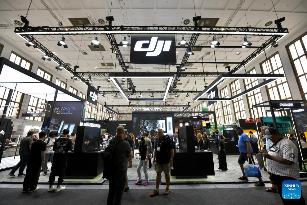 BERLIN, 6 septiembre, 2025 (Xinhua) -- Imagen del 5 de septiembre de 2025 del área de exposición de DJI vista en la IFA Berlín 2025, en Berlín, Alemania. La IFA Berlín 2025, una de las ferias comerciales más grandes del mundo dedicada a la electrónica de consumo y los electrodomésticos, abrió el viernes, enfocándose en temas orientados al futuro como la tecnología de la información, la inteligencia artificial, el software y la potencia informática, así como soluciones sostenibles para el hogar, la movilidad y el estilo de vida. (Xinhua/Zhang Haofu)