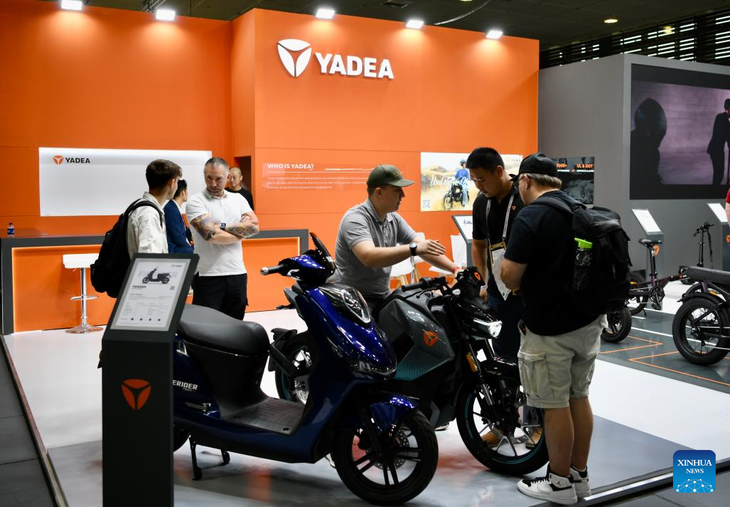 BERLIN, 6 septiembre, 2025 (Xinhua) -- Imagen del 5 de septiembre de 2025 de personas visitando el área de exposición de YADEA en la IFA Berlín 2025, en Berlín, Alemania. La IFA Berlín 2025, una de las ferias comerciales más grandes del mundo dedicada a la electrónica de consumo y los electrodomésticos, abrió el viernes, enfocándose en temas orientados al futuro como la tecnología de la información, la inteligencia artificial, el software y la potencia informática, así como soluciones sostenibles para el hogar, la movilidad y el estilo de vida. En la IFA de este año, las marcas chinas siguen estando a la vanguardia de la exposición. Grandes marcas como Haier, Hisense y TCL presentan sus últimas innovaciones en electrodomésticos con inteligencia artificial, pantallas inteligentes y soluciones de eficiencia energética. (Xinhua/Zhang Haofu)